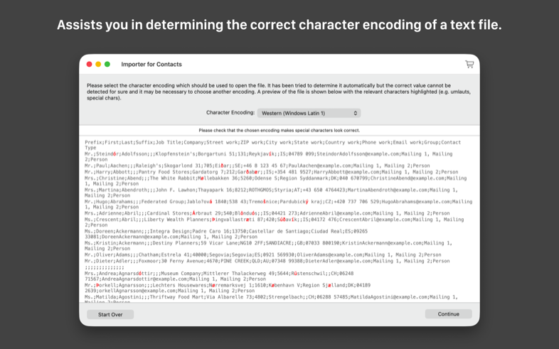 Comes with an interactive preview to make it easier to determine the character encoding of the import file – helpful if you don't