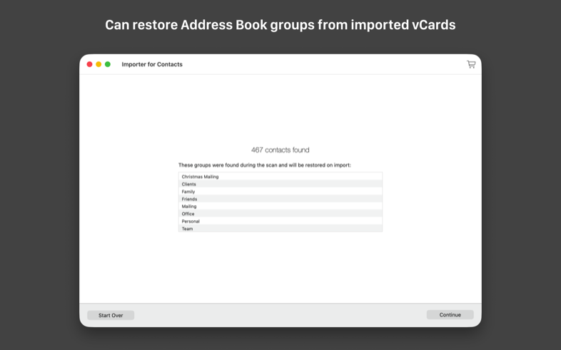 Importer for Contacts, a Mac app, offers greater flexibility than Apple Contacts' import function. It converts Excel, CSV, and tab-delimited files to vCards and restores Address Book groups from vCards. Native to MacOS, it supports all Address Book contact fields, including custom labels. It's essential for frequent data import into Apple Contacts.