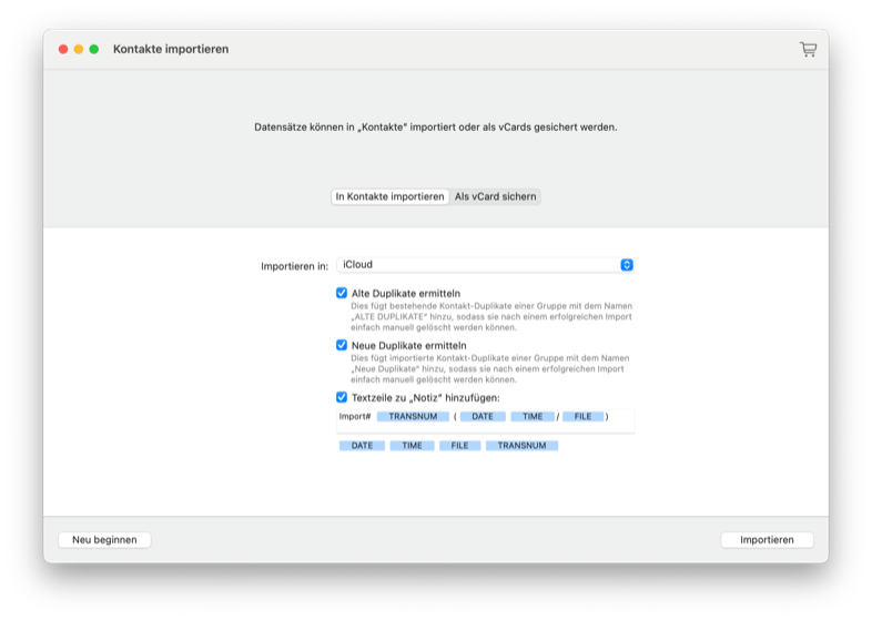 vCards konvertieren kann. Die App kann auch Adressbuchgruppen aus vCards wiederherstellen. Kontakte importieren ist eine native MacOS-Anwendung und unterstützt alle Felder eines Mac/iOS-Adressbuch-Kontakts,