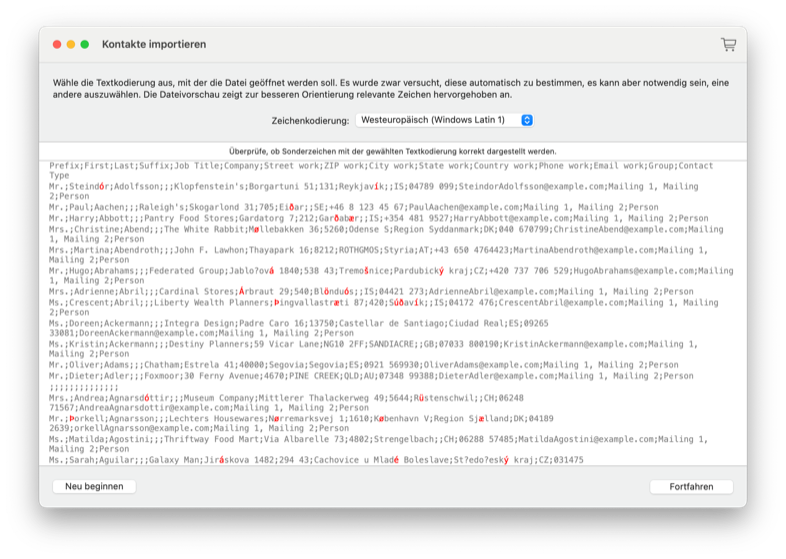 Importiert CSV-Dateien, die Apple Kontakte nicht öffnen will